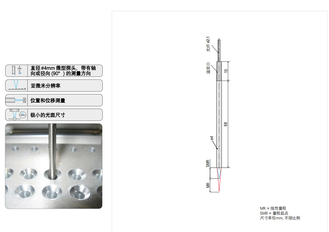 ● 探頭既能軸向測量,也有90度光束,可用于小孔洞內的徑向測量。