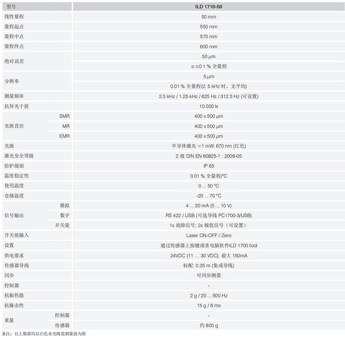 遠距測量傳感器產(chǎn)品系列optoNCDT2210和1710-50可以從相對較遠的位置對被測物體進(jìn)行精確測量。與普通激光傳感器相比較,遠距測量傳感器 仍然利用激光三角反射式原理完成與被測物體之間的無(wú)接觸式測量,但此產(chǎn)品系列擁有更大的安裝距離,可有效避免傳感器與被測物物體間的意外接觸碰撞。傳感器 運用了RTSC實(shí)時(shí)表面補光技術(shù),適用于測量結構復雜的表面